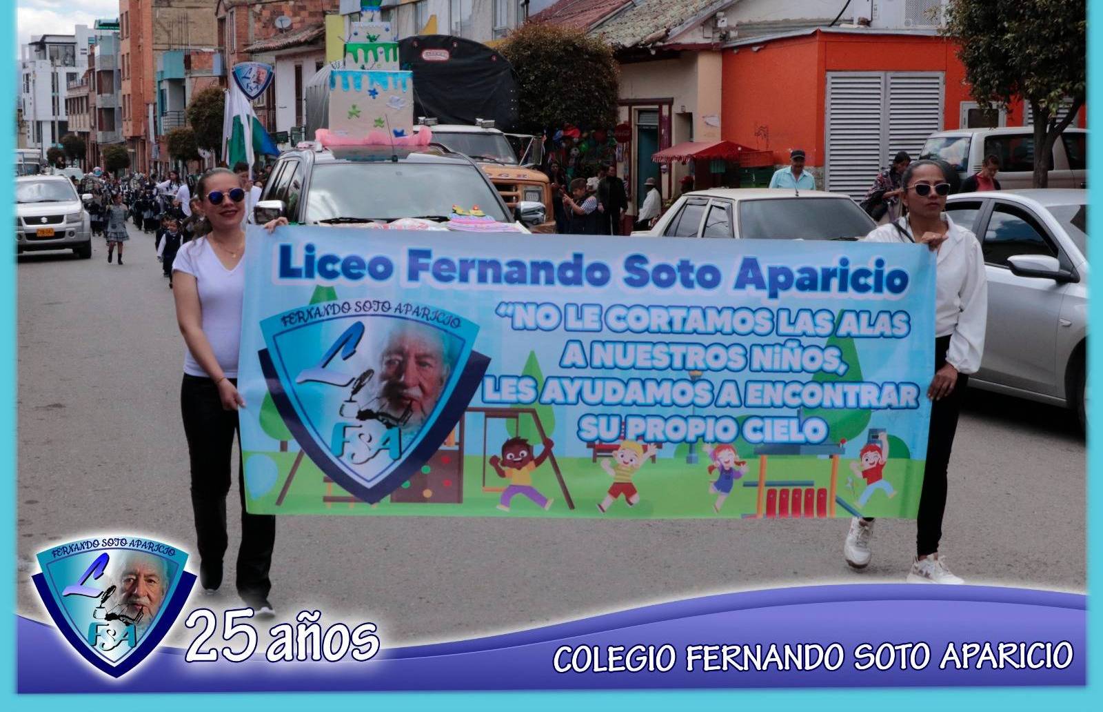 El Liceo Fernando Soto Aparicio es un establecimiento académico con 25 años de trayectoria, fundada bajo la inspiración del maestro y escritor boyacense Fernando Soto Aparicio, cuyo legado humanista guía nuestra labor diaria. Nos caracterizamos por ofrecer una educación integral, donde el conocimiento, los valores y la creatividad se entrelazan para formar niños y jóvenes críticos, sensibles y comprometidos con su entorno.